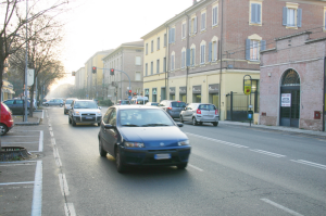 Tuttavia il PSC ed il POC vigenti hanno previsto la realizzazione delle ciclabili su entrambi i lati ed hanno declassato questo tratto a strada urbana di quartiere (art.10.7 1e), che prevede corsie da 3,00, con la maggiorazione di quella a destra a 3,50m. per la presenza del trasporto pubblico, ciclabili da 2,50 (minimo) e marciapiedi da 1,50 (minimo).