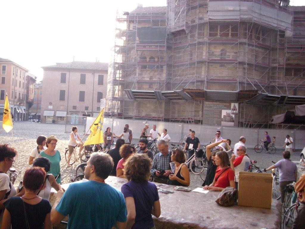 In Corso Vittorio Emanuele c’era la sede del partito fascista, piu’ di 1700 furono schedati dal regime, la maggior parte erano operai , muratori, braccianti, un controllo totale che veniva effettuato capillarmente e che spesso sfociava nell’invio del dissidente al confino. Nel 1938 furono proclamate le leggi razziali, per questo non abbiamo potuto non ricordare , tornando in Piazza Grande, l’estremo gesto di protesta messo in atto dall’editore Angelo Fortunato Formiggini, intellettuale illuminato che contrastava il regime a colpi di satira.