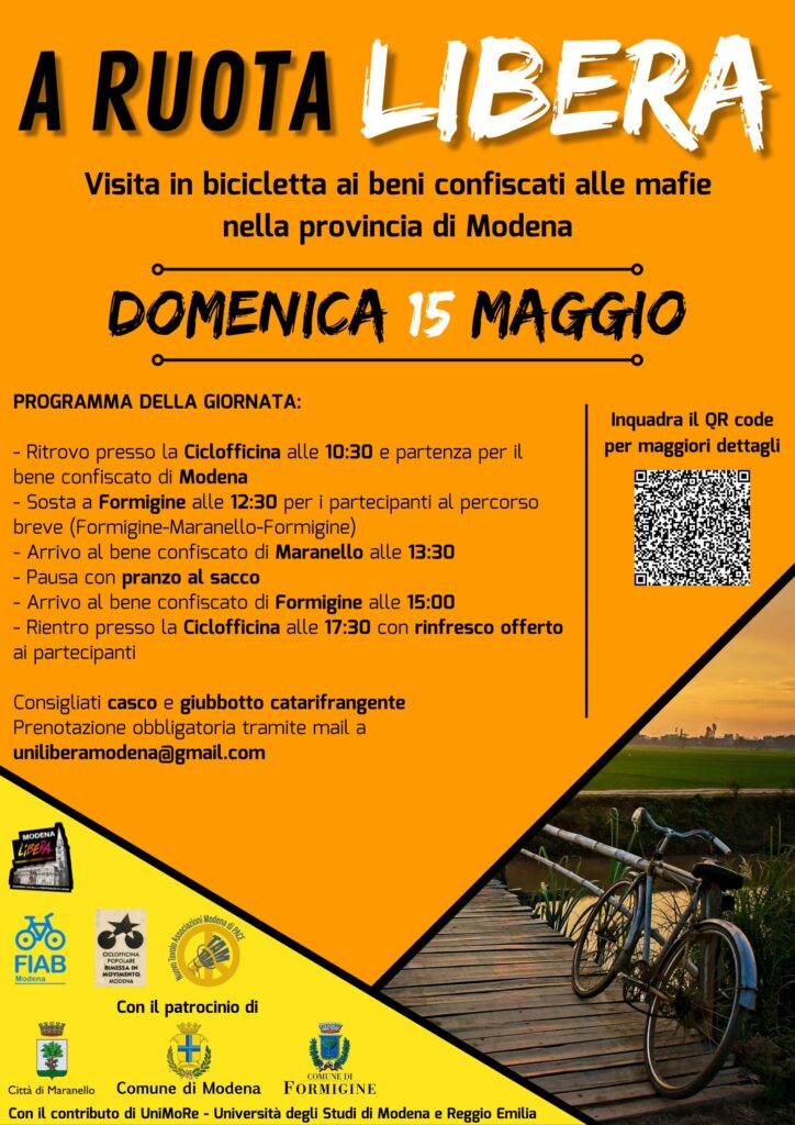 Che cos’è un bene confiscato? A Modena ci sono? Qual è la differenza tra confisca e sequestro? Ai mafiosi sono sempre stati sequestrati i propri beni? UniLibera è qui per rispondervi. Insieme a FIAB Modena salteremo in sella per approfondire il tema dei beni confiscati alla criminalità organizzata, con particolare attenzione ai beni del nostro territorio.