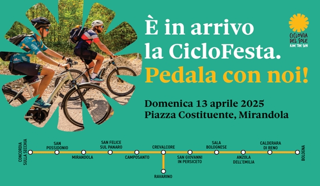 La grande festa a Mirandola con tre biciclettate, da nord, da sud e da ovest, per raggiungere Piazza della Costituente. E poi, dalle ore 10.30 e per tutta la giornata, laboratori, stand enogastronomici e stand del mondo bike! Ci saranno interventi istituzionali, tante esperte ed esperti parleranno di mobilità sostenibile e cicloturismo e non potrà mancare la musica.