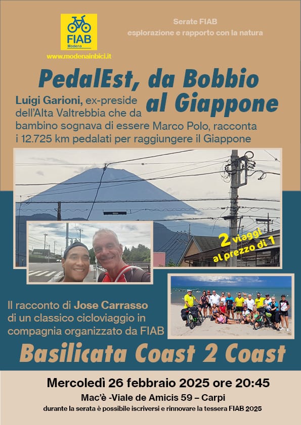 26/2 – Carpi – Macè – “Da Bobbio al Giapppone” + “Basilicata Coast to Coast”