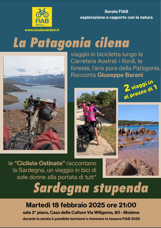 18/2 – Modena – Casa delle Culture – “La Patragonia Cilena” + “Sardegna Stupenda”