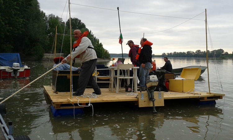 Da Mantova al mare (o quasi) su una zattera costruita artigianalmente, portata dalla corrente, con un piccolo motore da avviare solo per ormeggiare la notte e piantare le tende sulle rive del grande fiume.