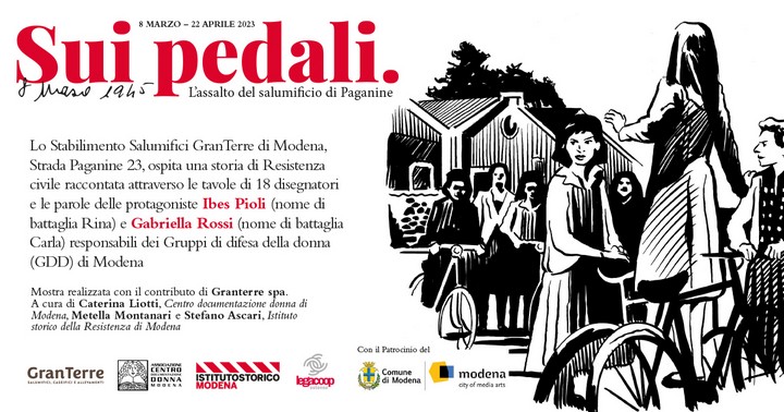 Intervengono Stefano Bonaccini, Presidente della Regione Emilia-Romagna, Daniela Lanzotti, presidente ISR Mo, rappresentanti di GranTerre e di Legacoop Estense e i curatori della mostra. - ore 11.15 Partenza della biciclettata sui luoghi della ResistenzaSono previste tappe al Parco della Resistenza presso la stele dedicata all’on. Gina Borellini, Medaglia d’oro al valore militare e alla Prefettura di Modena.