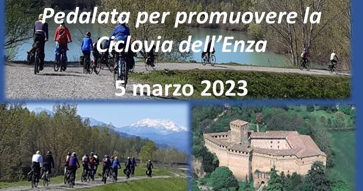 FIAB PARMA e FIAB Reggio Emilia, con la presenza di FIAB Modena, FIAB Novellara e FIAB Forli, organizzano il 5 marzo 2023 una pedalata denominata “Una luce sull’Enza” per chiedere la realizzazione della ciclovia dell’Enza (denominata Ciclovia ER 11 dalla Regione Emilia-Romagna), già proposta alcuni anni fa nel Contratto di Fiume anche da varie realtà territoriali, quali CAI, Ass. Amiamolenza, FIAB RE e FIAB PR.