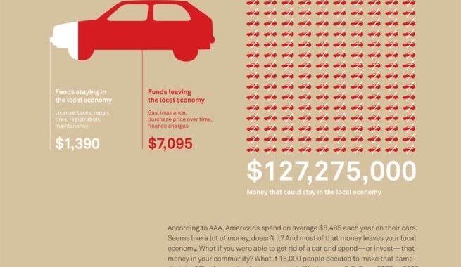 Un altro preoccupante studio americano, dice che 81% di questi soldi va a finire fuori dalla comunità in costi di acquisto, benzina, assicurazioni e finanziamento, e solo il 19% rimane in loco per riparazioni, tasse locali, cambio gomme. Non abbiamo i dati italiani, ma non dubitiamo siano poi tanto diversi.
