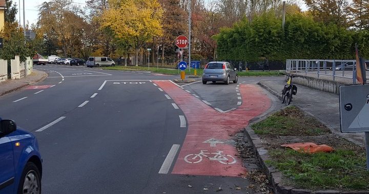 1 – In via Pezzana nell’incrocio del “dinosauro” le bici transitano da sempre; chi in bicicletta proseguiva diritto verso via Rossetti rischiava di venire steso dalle auto che giravano a destra per imboccare il sottopasso, mentre chi svoltava a destra rischiava di venire travolto o stretto contro il marciapiede dall’automobilista che effettuava la medesima manovra; con la posa delle corsie ciclabili e la loro colorazione in rosso ciclisti ed automobilisti possono comportarsi come prima ma con più rispetto reciproco; i ciclisti devono rimanere all’interno della loro corsia, non possono ad esempio zigzagare in mezzo alla strada, gli automobilisti possono invadere, se il caso lo richiede, la corsia ciclabile ma devono dare la precedenza ai ciclisti; il colore rosso serve a richiamare l’attenzione degli automobilisti, spesso distratti dal cellulare, della possibile presenza di ciclisti cui devono dare la precedenza; perché la sicurezza dovrebbe essere diminuita? Forse le critiche nascono da una novità non ancora pienamente conosciuta dai cittadini.