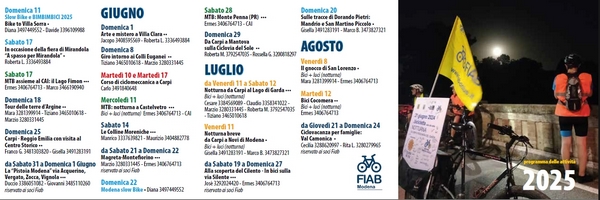 Abbiamo definito il calendario delle attività per 2025: gli aggiornamenti in tempo reale sulle attività confermate e quelle cancellate saranno sempre pubblicate sulla pagina www.modenainbici.it/calendario
