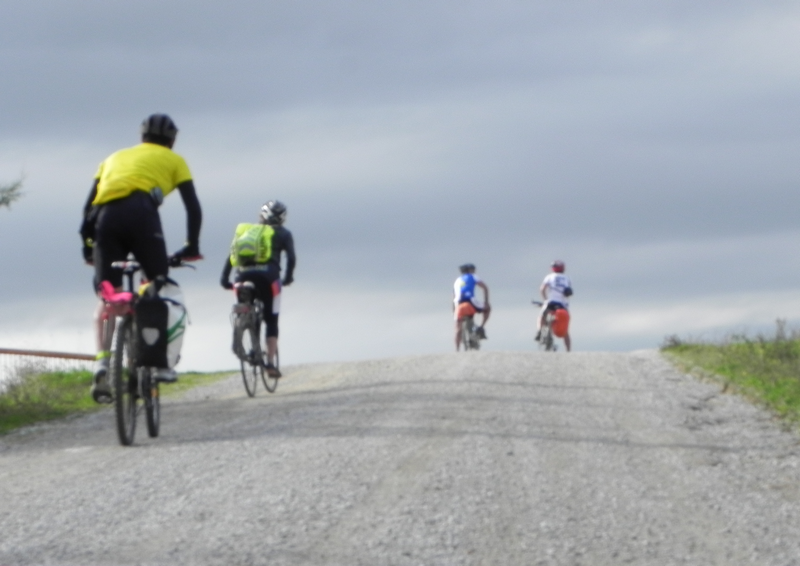 Il sette maggio, ultimo giorno, facciamo colazione all’aperto. E’ l’ultima tappa e gli amici di Pordenone iniziano il rientro già dal mattino. Il resto del gruppo prosegue fino a Castiglione della Pescaia, poi a Pian d’Alma saliamo a sinistra per la strada sterrata che porta alla spiaggia di cala Violina. La giornata è calda, la salita faticosa così, appoggiate le biciclette in spiaggia, ci infiliamo il costume e ci tuffiamo in mare: troppo piacevole! Poi, con le ultime brevi salite nella fitta boscaglia, si raggiunge la statale e la stazione ferroviaria di Follonica, per tornare a casa.